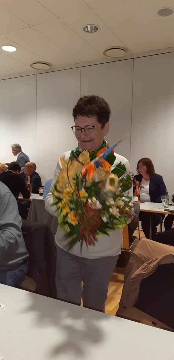 Der neue Vorsitzende Peter Rau und Bürgermeister Christian Schwarz dankten der scheidenden Vorsitzenden Gudrun Esch für ihre über 11-jährige Arbeit als Vorsitzende der FWG Aßlar und überreichten ihr ein schönes Blumenbouquet.