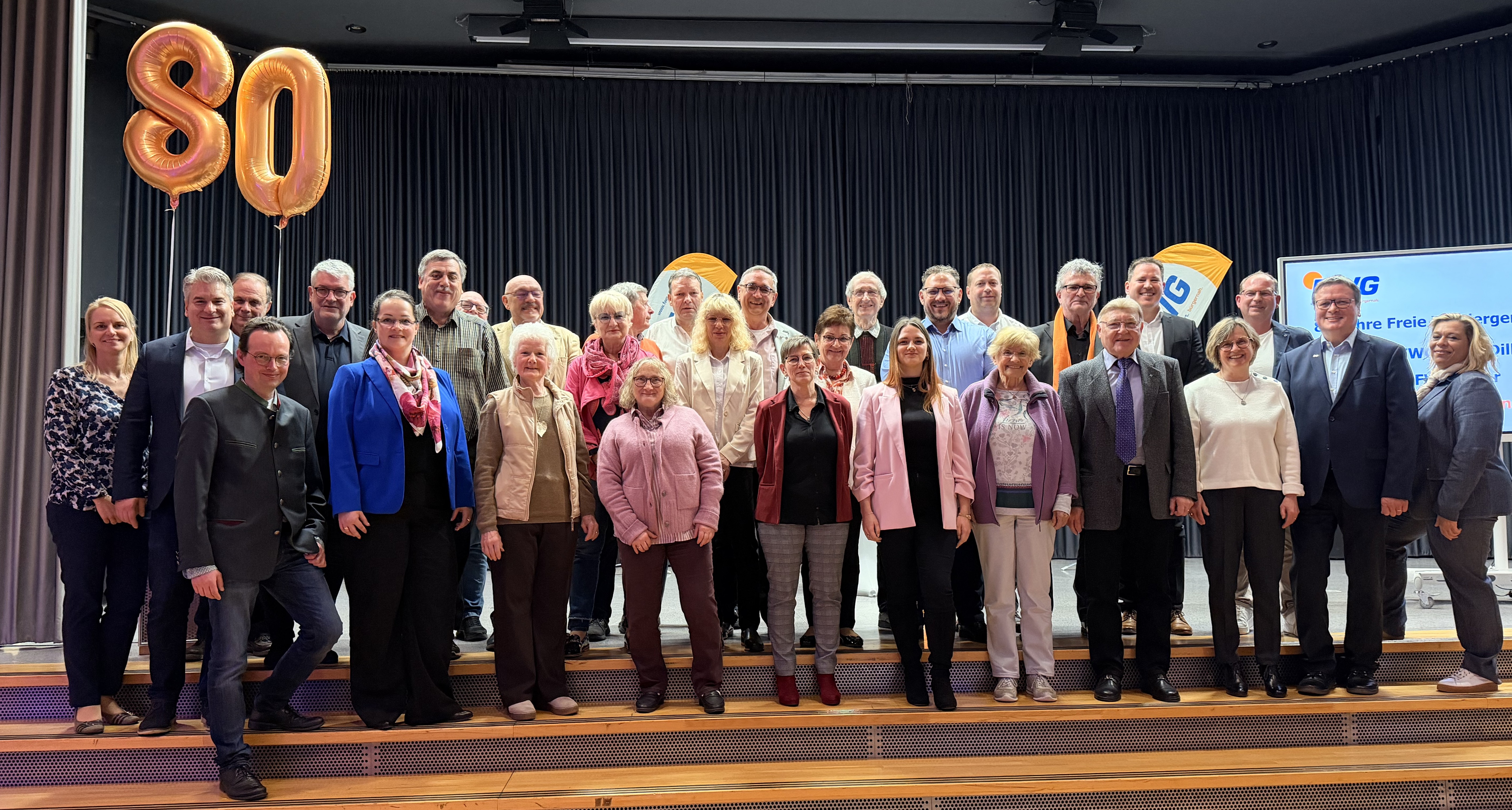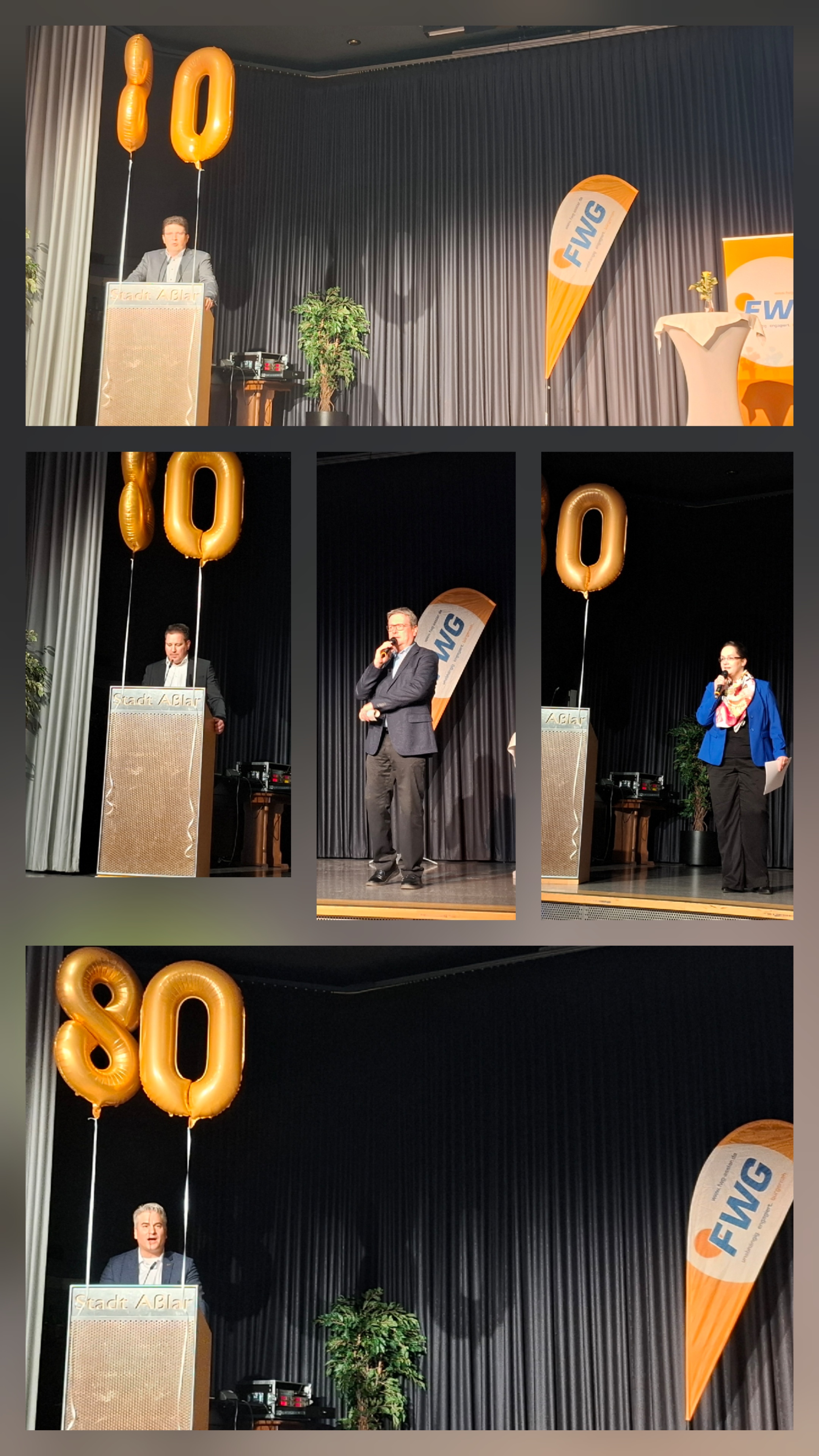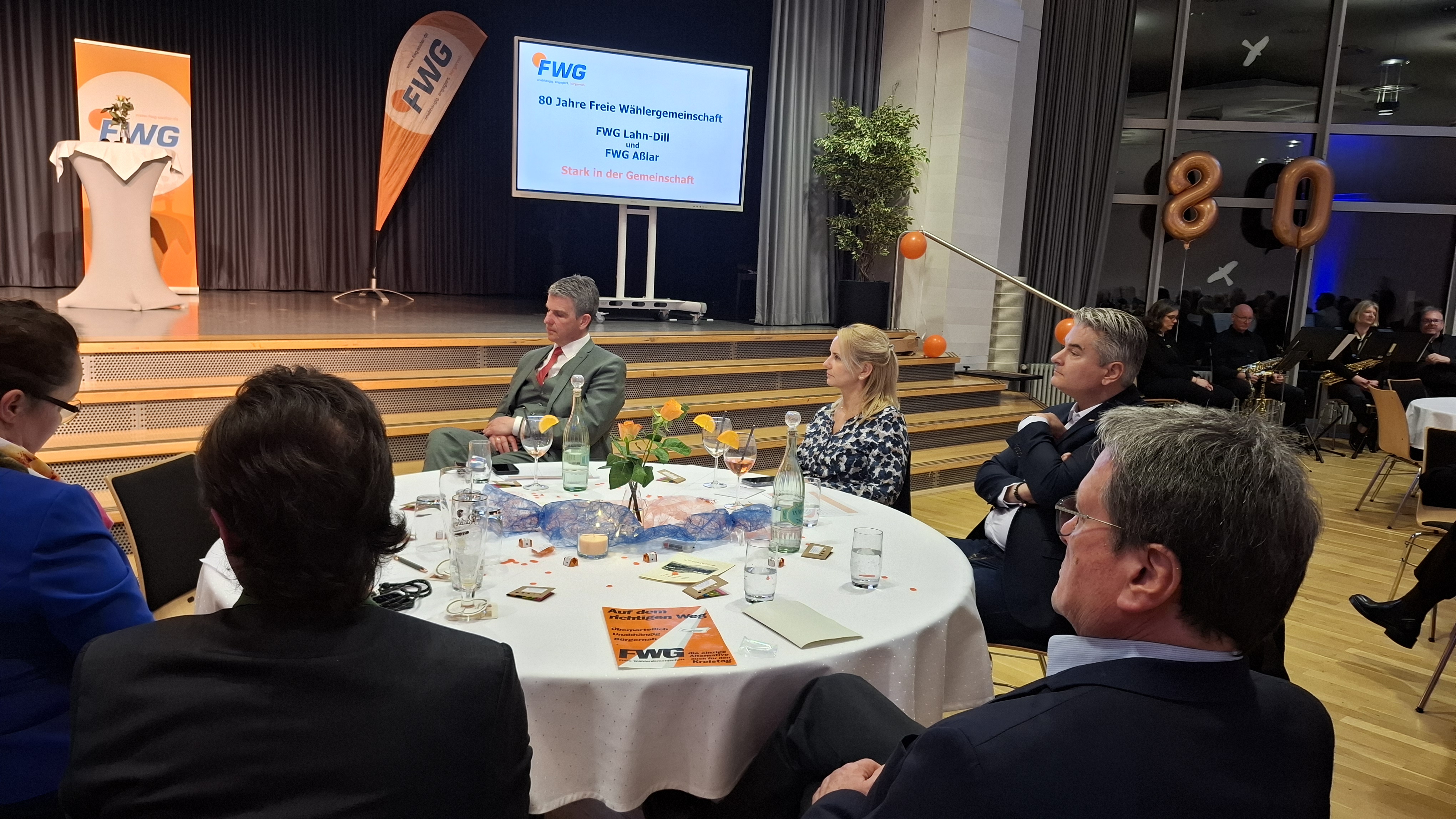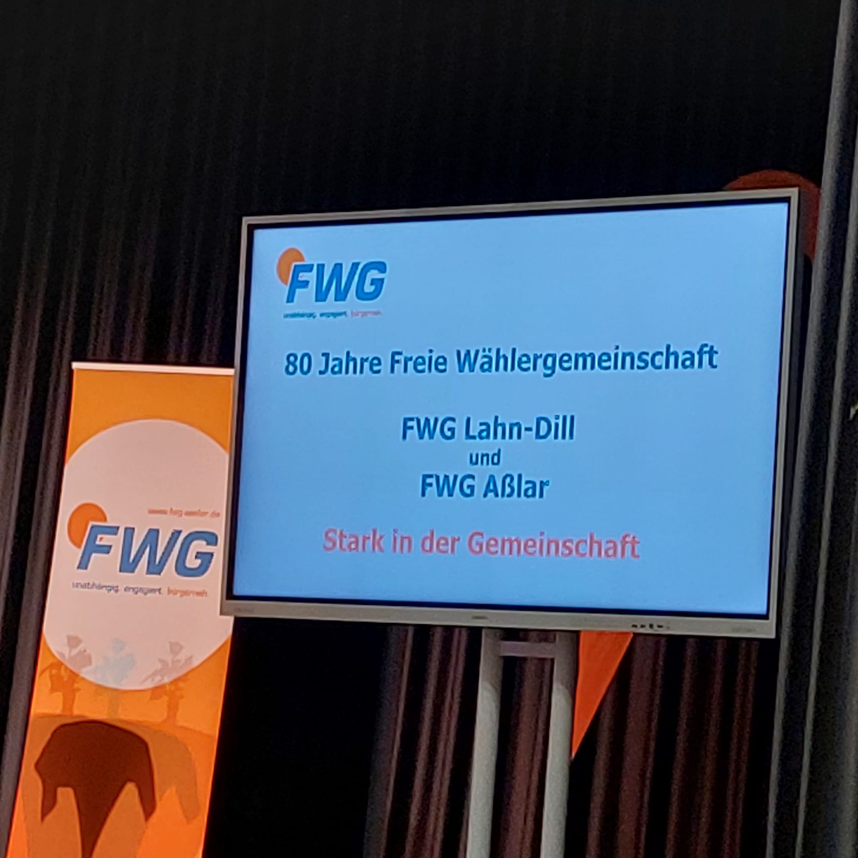 Unter dem Motto „80 Jahre FWG – 80 Jahre Gemeinschaft“ versammelten sich zahlreiche Vertreterinnen und Vertreter aus dem gesamten Lahn-Dill-Kreis, um auf acht Jahrzehnte kommunalpolitisches Engagement zurückzublicken und zugleich den Blick nach vorne zu richten.Durch das abwechslungsreiche Programm führte Katharina Schäfer, Stadtverordnetenvorsteherin und Mitglied der FWG Aßlar, die mit Charme und Souveränität die einzelnen Programmpunkte miteinander verband.